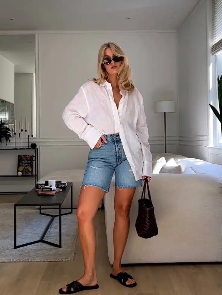5. Como deixar o look com bermuda jeans mais sofisticado?
