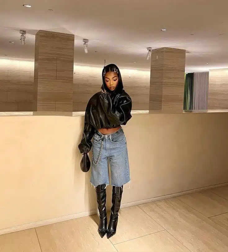 Sim, botas com bermuda jeans funcionam — e muito bem. Especialmente em dias mais frios.